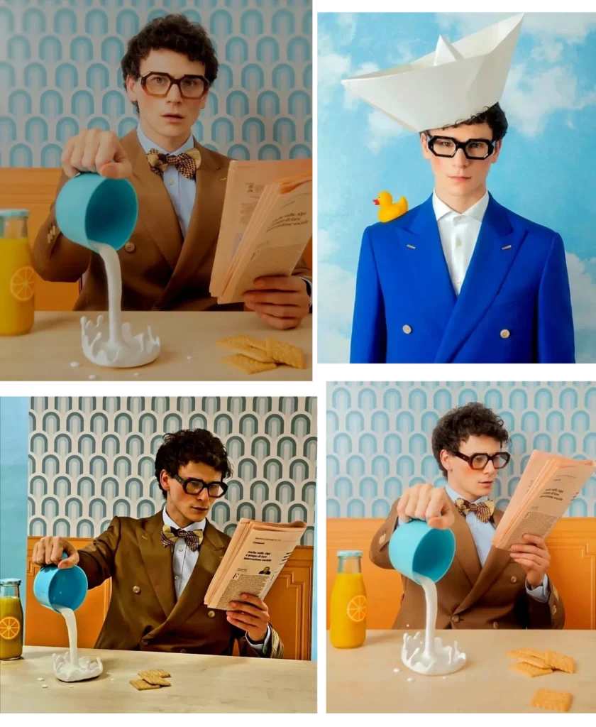 Frank Matano in “Prova Prova Sa Sa 2” indossa l’abito Milano Rosario Viscardi, uno stile anni 90′ con un tocco che rispecchia tanto l’attore comico Jimm Carrey in “The Mask”.